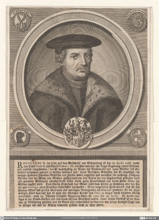 36/Z 2.488 - Rudolphus II. der letzte auß dem Geschlecht von Scherenberg, aus: [Icones virtuosae ... episcoporum Herbipolensium... ]